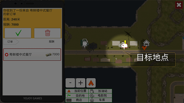 5、在取到餐之后,继续根据左上角的地图查看位置,进行行驶,快递到达指定位置后,即可获相应的报酬。