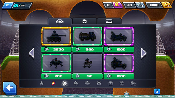 撞头赛车是一款横版的像素风休闲游戏,同时也是一款相当具有暴力的休闲娱乐性游戏,游戏中玩家将驾驶各种不同的车型与对手展开1V1的较量,目标是撞击到对方车头,而获胜的方法很简单,那就是纯撞,不管你是直接用轮子糊对方车头,还是用场地的机关电锯把对方车头切成两半,只要系统判定一方的车头受伤,游戏就分出胜负了,即可得到1个积分,优先获得积分全满的一方将胜出。其次,撞头赛车颠覆了小编我对传统像素游戏物理表现的刻板印象,游戏内不仅有出色的物理碰撞,还有各种物理翻转、重力、加速,拆分、乃至部位碰撞都设计的有声有色,为的就是能够给予玩家更为刺激,更加真实的模拟游戏环境。与此同时,游戏中还有各种各样的赛车款式和多元化的挑战模式,来丰富玩家们的休闲生活,激情对决,一切都从这里开始,现在就叫上你的好友,一起来一局吧!本次今天小编为大家带来的这款撞头赛车最新破解版,已修改了无限金币和无限螺丝,过完新手教程即可获取无限金币,无限螺丝,倘若在使用金螺丝时候提示不足让购买,直接点击购买礼包即可获得无限金螺丝哦,使用金币和螺丝可以购买收藏更多不同种类款式的优秀赛车。