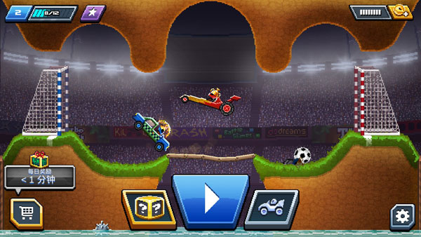 1、在两人竞赛中要特别小心保护你的车头!成功撞击到对方车头赢得比分。首先获得5个积分的玩家胜出。2、在竞技场上驾驶越野车、垃圾卡车和F1赛车。每种车辆都有自己的优胜劣势。