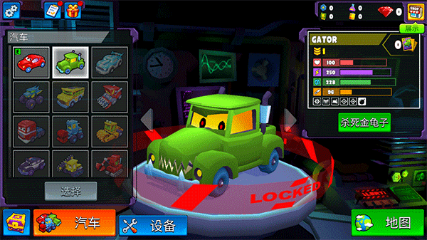 你从未见过如此这般的。现从四面八方都可以看到 Beetlee、Gator、Locomachina、Tankominator 和其他传说中的饥饿汽车,全面呈现其辉煌!每辆车都有一个独特的功能,使其独一无二。它们会帮助你打败危险的外星人!投弹,咬合,高速撞击并获胜!