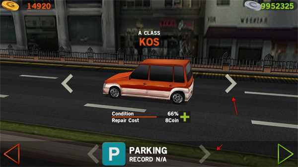 2、车辆旁边箭头可以换车辆,下面是可以换赛道的。