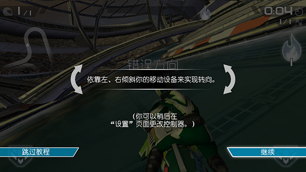2、转向:依靠左、右倾斜你的移动设备来实现转向(你可以在“设置”中更改方式);