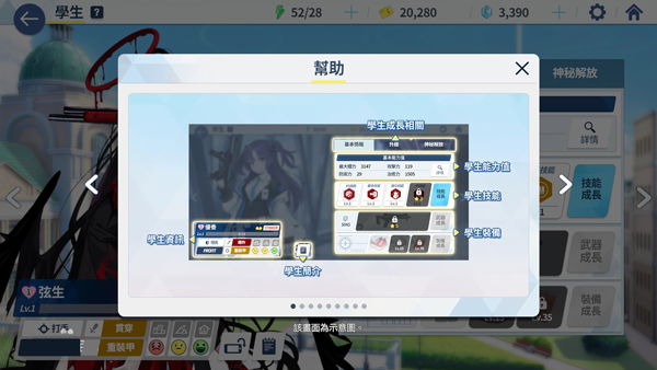 3、在基本的战略操作以外,也要考量学生对于战斗场地的适应性、使用的枪枝火力与敌方防御克制,根据关卡种类配置队伍。角色的等级随着玩家等级而提升上限,平时则需要准备装备与技能的提升才能配养学生更为强大。