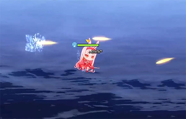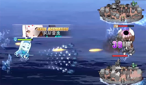 二技能:当角色的鱼雷武器被激活之后,可以触发一个回合的特殊弹幕,满级弹幕为LV、10。如果特殊弹幕攻击到了敌人,那么岛风在接下来3秒内的伤害将会额外增加3、5%,满级时增伤效果为8、0%。除此之外,特殊弹幕中的鱼雷还能够对被击中的敌人带去一个额外的进水效果。