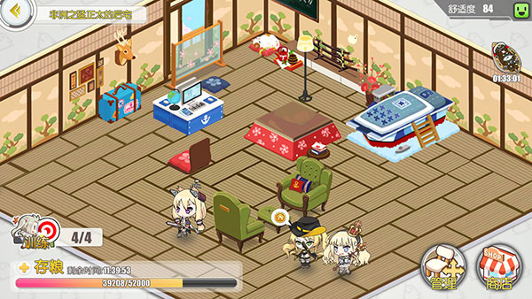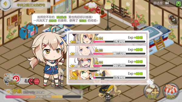 存粮和舒适度会影响到训练获得的经验值,后宅最多有四位舰娘同时进行训练,初始只有两个训练位,使用钻石可以购买训练位置。