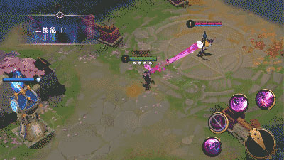 铃鹿御前发起冲锋,击中敌人式神或野怪,将会造成轻微击退效果,同时进行物理伤害,还有缴械效果,往后跳回还能增加自身攻速。