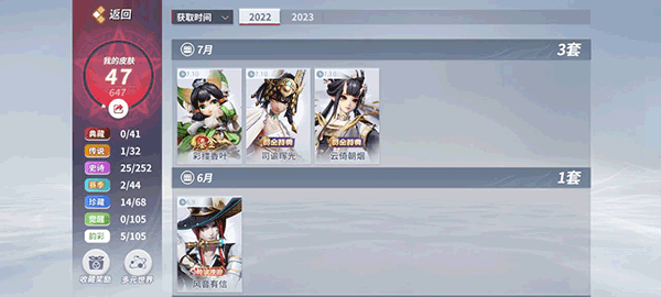 这样我们就可以看见我们所拥有的皮肤了,我们还可以根据皮肤的品质或者我们获取皮肤的时间来进行查看,非常的方便。