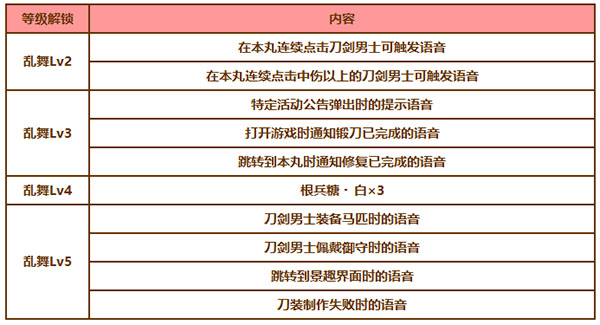 「乱舞」等级提升后,可以触发新的语音并了解到刀剑男士新的一面。