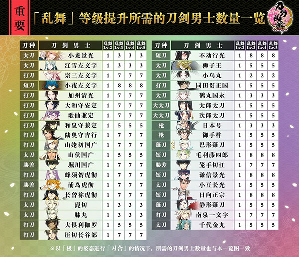 提升乱舞等级所需的刀剑男士的数量,取决于刀剑男士「极」化前的稀有度。