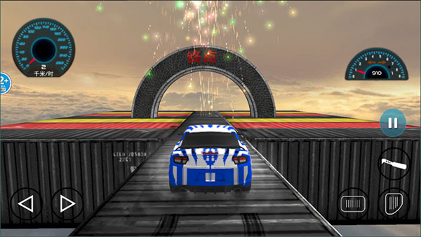 2、游戏的玩法也非常简单,我们需要操控汽车在空中架起的赛道上前进到达终点,通过左侧的按钮控制汽车的左右转向,右侧的按钮分别用来控制汽车的前进、后退和刹车;