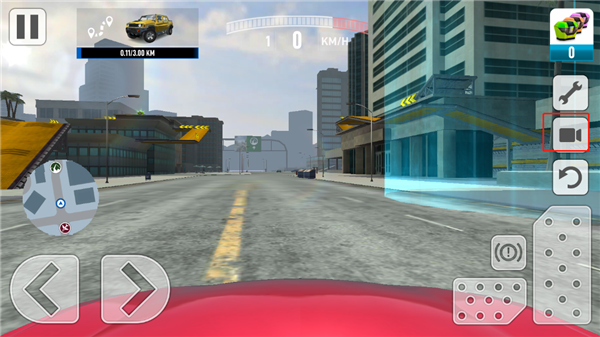 4、正式进入游戏后,左方可以点击控制方向键,右方玩家能够控制油门和刹车;