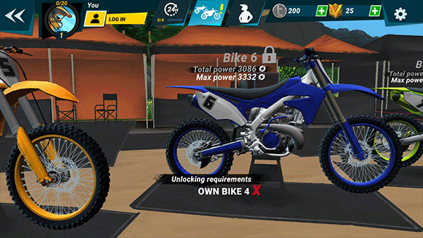 2、挑战的时候能够去选择不同的摩托车,并且能够去升级性能。