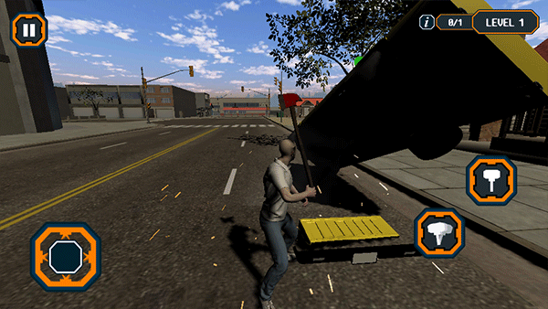 3、挥动斧子对汽车进行攻击,汽车上有血条,血条为零的时候汽车报废