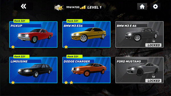2、游戏内还有丰富的汽车类型等你解锁游玩,选择帅气的汽车然后进行下一步;