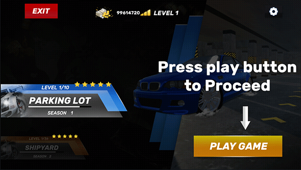 1、进入Car Park游戏后选择模式,游戏内包括三种游戏玩法,分别是地下车库模拟停车、限时任务挑战和城市自由驾驶,选择你喜欢的模式即可进行游玩;