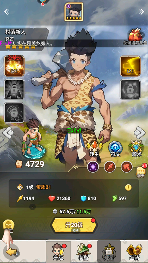 升级、进阶:提高伙伴的等级、属性、解锁技能、升级技能;