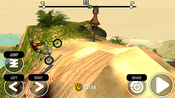 7、像此时,车辆快翻向后方了,就要压前轮,按右边按钮;