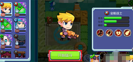 在正式战开始前,可以在左框已经达成解锁的战士,他的攻、存、辅在栏中都可见,选择最高的属的进入主游。