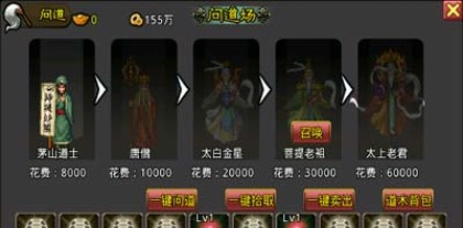 以上可以用铜钱开启,不过VIP开启的几率大的很多,我没充钱的号,最后太上老君,开了10次,别说黄色的,就连红色没出一个。
