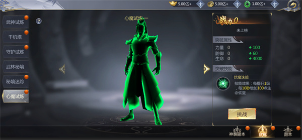 心魔试炼的挑战时长为5分钟,在限定时间内击败领主,即判定为挑战成功,可返回心魔试炼界面激活突破技能,并激活下一关心魔试炼。
