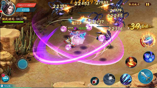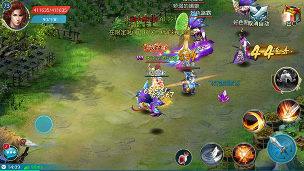 游戏内设有很多玩法,域外战场、跨服战、帮派战、魔神争霸、决战之巅等,多人组队在仙侠场景内自由对抗妖魔,或者与帮派阵营好友一起打外服。职业技能设置以及操作技巧对PK战果影响较大,所以血厚才是硬道理,手速才是软实力。