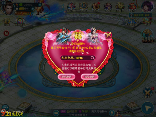 婚姻是一辈子的大事,在《梦想仙侠2》中也是,籍着2代更新的激情未散去,我们继续为玩家奉上感恩大礼,结婚系统。