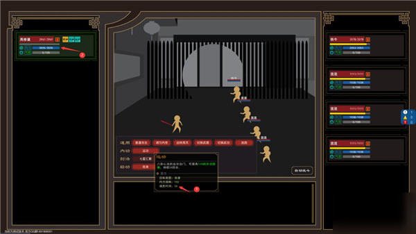 3、运转周天:回复约1/6的内力,因为内力影响到攻击和防御,因此当内力低于三分之一时就要开始注意使用运转周天来回复内力。