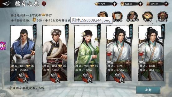 最后给大家推荐一个全员恶人的阵容搭配:梅超风(掌)+灭绝师太(剑)+完颜洪烈(力)+甄志丙(气)+李莫愁(技),可以尝试一下哦。
