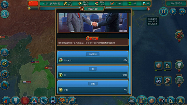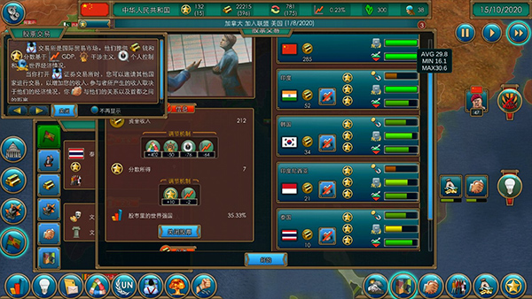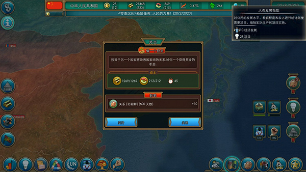 页面右边则是可以参与的各种事情,合理的将你的国家发展壮大