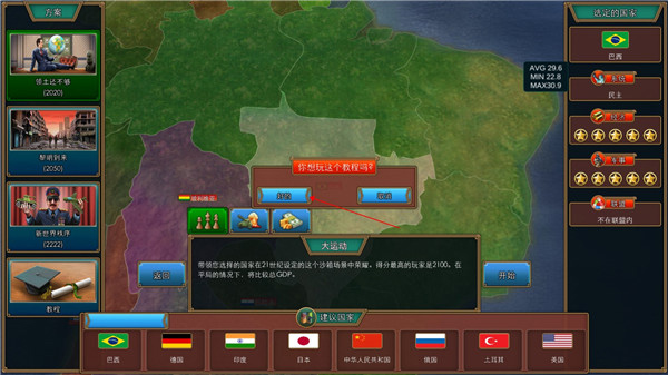 然后在下方选择一个国家作为主体,并且还可以先看一下新手教程