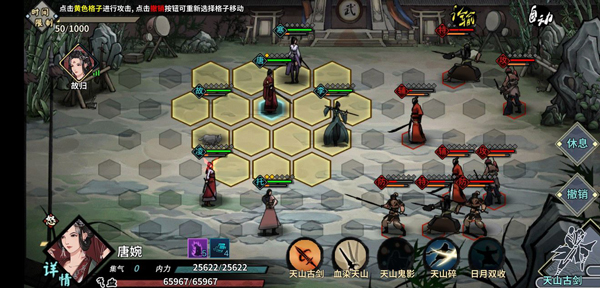 1、人物选择:第一位选寒烟,最后一位选大师姐,可以让寒烟和大师姐开局站位处于中间