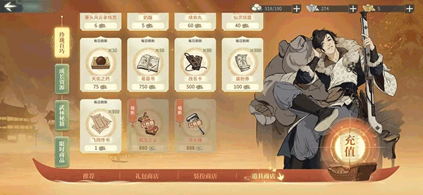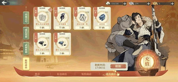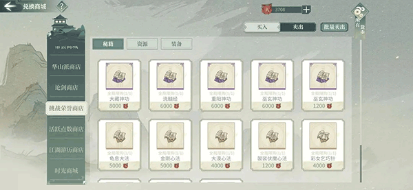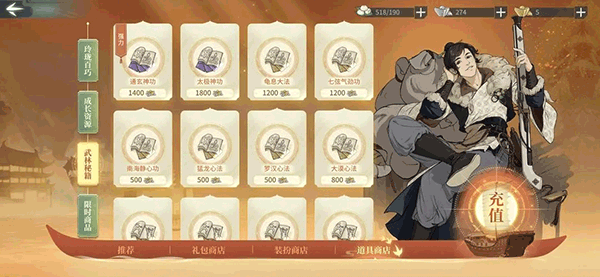 商店里花元宝买的秘籍心法建议还是可以买一下,这个是稳定不亏的,因为这个游戏有一些心法,他是限定有数量的,除了固定的方式获得几本以外,他是无法获得更多,商店里的大藏心法和洗髓经龟息功法都是后面必要换的。不然你都不好配队。图中大藏我换了,你找不到了。