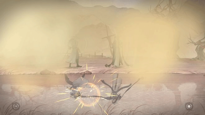 这样的模仿的玩法也衍生出了「沙尘暴」的机制,乐曲途中,上半部分的画面将会被沙尘遮挡,玩家无法看清BOSS动作,甚至无法看清「音波提示」,只能依靠倒影的声音来进行判断。
