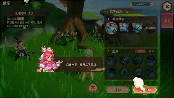 7、另外,我们还需要将我们的武学等级进行升级,升级后可以提升战力