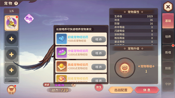 在等级方面侠士们是可以通过战斗和使用宠物经验药来提升宠物等级,在提升宠物等级后,宠物的各项属性也会有飞速的成长。