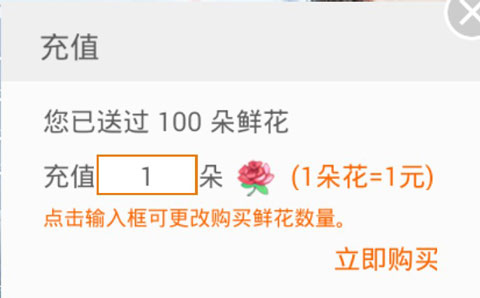 在弹出的充值窗口中,输入你要购买鲜花的数量,点击立即购买,即可。