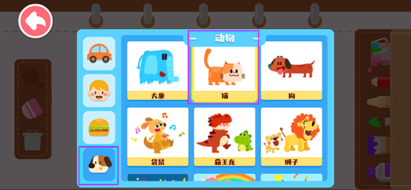 2、在这里你可以先选择好要填充的类型,我们这里选择的是动物类里面的猫;