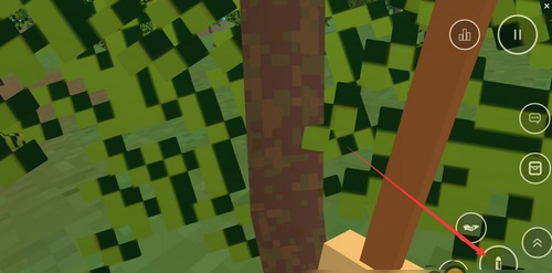 3、连续狂砍几次后,小树就消失变成木头,然后靠近木头,等出现可收取的英文提示后点击右边的手型按钮即可捡起木头,记住要靠近木头出现英文提示才可以喔!