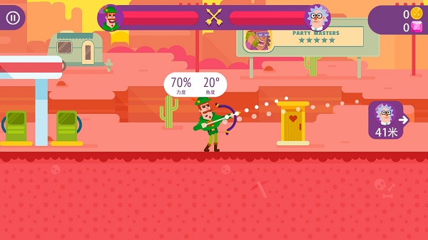 Bowmasters中文版是一款享誉世界的2D动作射击游戏,此前国服版本中文名叫冷血射手,一般又称弓箭手们,以清新卡通的明亮画风与“冷血”主题的鲜明对比,营造出了一种强烈的反差萌。在游戏中玩家需掌握基本的抛射技巧,因重力作用的影响,回合内你需要调整角度和力度,使角色手中的武器能精准命中敌方。