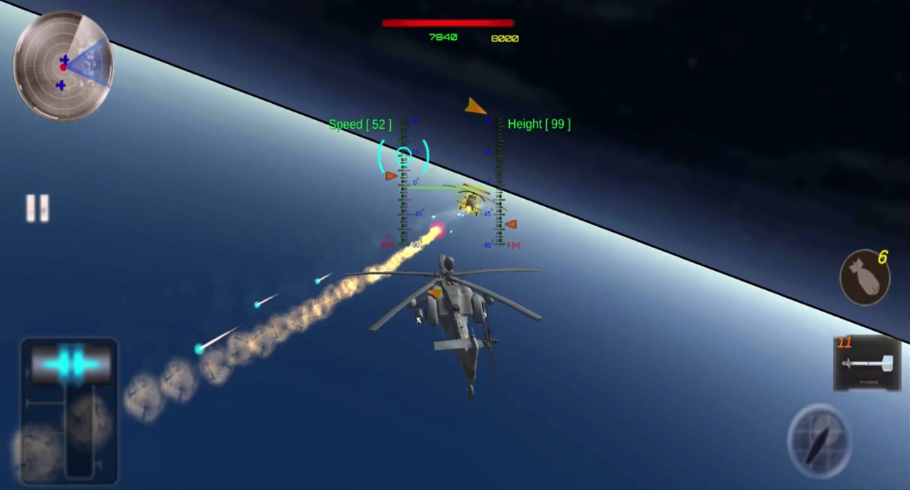 - 空战实战演练:面对越来越强的敌人直升机,你需要摧毁它们来保护自己的领土。