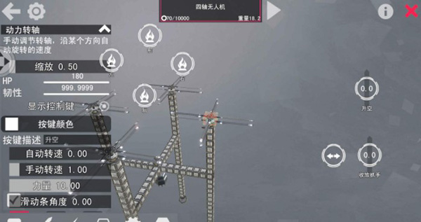 安装完成后,最重要的一步就来了,我们要通过点机械名称旁的按钮来使机械进入模拟场中,测试它的运动状态。将旁边的飞行按钮上拉,即可测试飞行状态。然后根据出现的问题,调整不同零件的参数。有的人飞行器会飞不起来,有的人飞行器会偏离直飞的轨道,还有像小编一样一着陆就散架了的……遇到这些情况不要担心,合理排查出现问题的位置,调整当前螺旋桨扇叶参数,或者检查机械连接是否牢固,即可轻松解决。