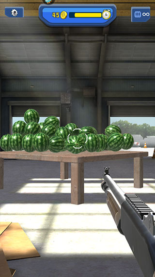 2、玩法非常简单,利用玩家手中的枪在指定时间内将西瓜等物品全部打碎即可;