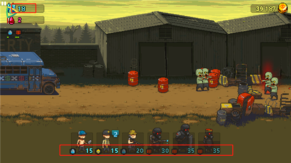 3、当看到勇气点数持续上升时,玩家可以根据僵尸的阵容,派出你的阵容队员,不同的队员拥有不一样的技能属性;