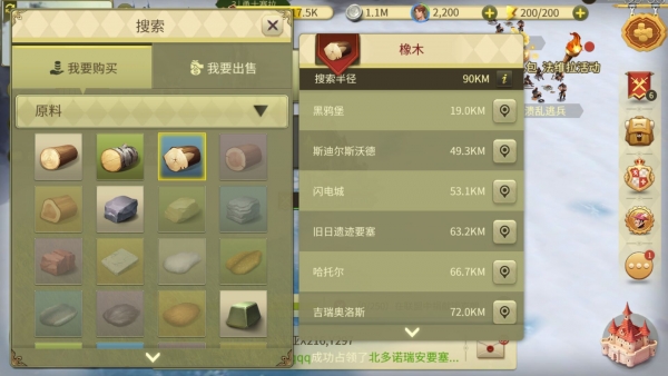 玩家在建造贸易类建筑拥有商队驿站后,可以在世界地图上搜索想要购买的资源,从而找到出售该资源的其他玩家或者是NPC城市,通过商队,可以以贸易的方式将需要的资源购买到,虽然这种方式比起城市生产来的资源要快很多,但也是需要付出等值的银克朗!