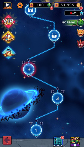 舰队手机版是一款迎战外星生物入侵的美丽像素空战手游,故事起源于人类对于太阳星系的掌管让一支存在于太阳星系以外的未知外星帝国感受到了威胁,由此展开的一场空间大战,最为一名退役老兵你需要重新回归舰队去战胜邪恶帝国的步步入侵。在这里简单的控制就能让你享受华丽特效所带来的空间射手体验,决战在各大boss之间,收复已被占领的行星。除此之外,在空军中队含有非常丰富的战斗引擎系统以及可进行升级强化的次要引擎系统,但需要的条件是要具备一定的等级,等级在每场战斗中得以提升。游戏中每消灭一支小队,就有机会获取增强火力的物品和其他类型的增益效果,有喜欢这款游戏的玩家朋友们快来下载体验吧。