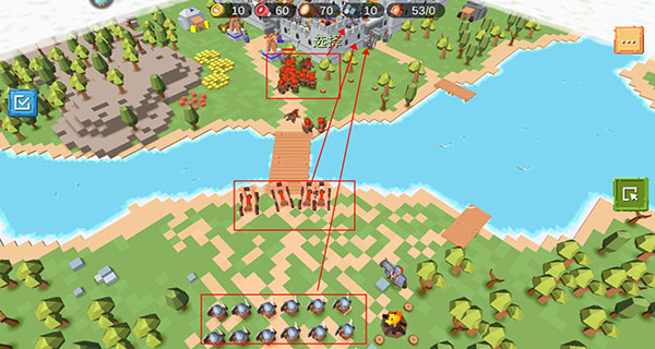 1、排兵布阵你可以自由的选择各种士兵单位来开始战争。