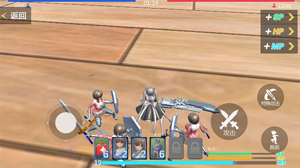 7、进入对战后,我们可以通过左下角轮盘控制角色移动,右下方包括攻击、特殊攻击和跳跃等按键,通过你灵活地操作进行酣畅淋漓的战斗吧,以上就是手办战争模拟器官方版的玩法了。