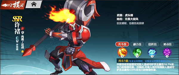 开局最强战力,新手唯一真神,零氪最有选择。许褚的存在为新手玩家们提供了非常优势的开局,免费领取,并且能够不断白嫖碎片,玩家们在升级、推图过程中自然而然就能得到强化的一个守护灵角色。本身作为SSR级别,在各方面的表现来看就很可观了。再加上足够简单的养成路线,最终成就了许褚的超强性价比!肉盾设定,很能抗,在合理的羁绊、技能以及装备搭配下能一路用到底!活着才有输出~