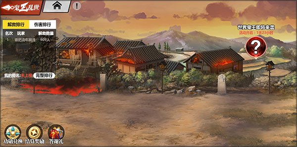 不同于【灵域幻境】,【鬼王乱世】玩法有两个排行榜——世界鬼王排行、解救排行。解救排行中,本期玩家解救亡灵百姓数量的排行,排行不分职业;世界鬼王排行中,本期玩家挑战鬼王的最高伤害排行,排行按职业划分。