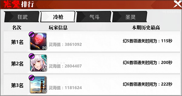 当然,作为一个挑战玩法,幻境也有排行。主要是按照玩家职业进行排行,排行记录玩家最好成绩。灵域幻境每7天结算一次,结算时间为凌晨0点,每期结算后(幻境会关闭5小时),所有玩家会被清理每期结算后,幻境只能在凌晨5点后才可进去挑战。